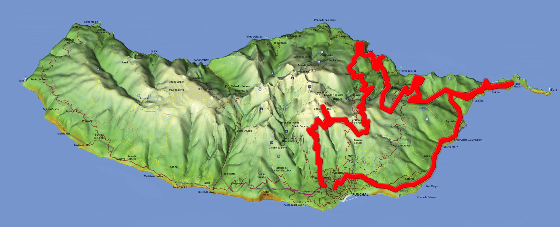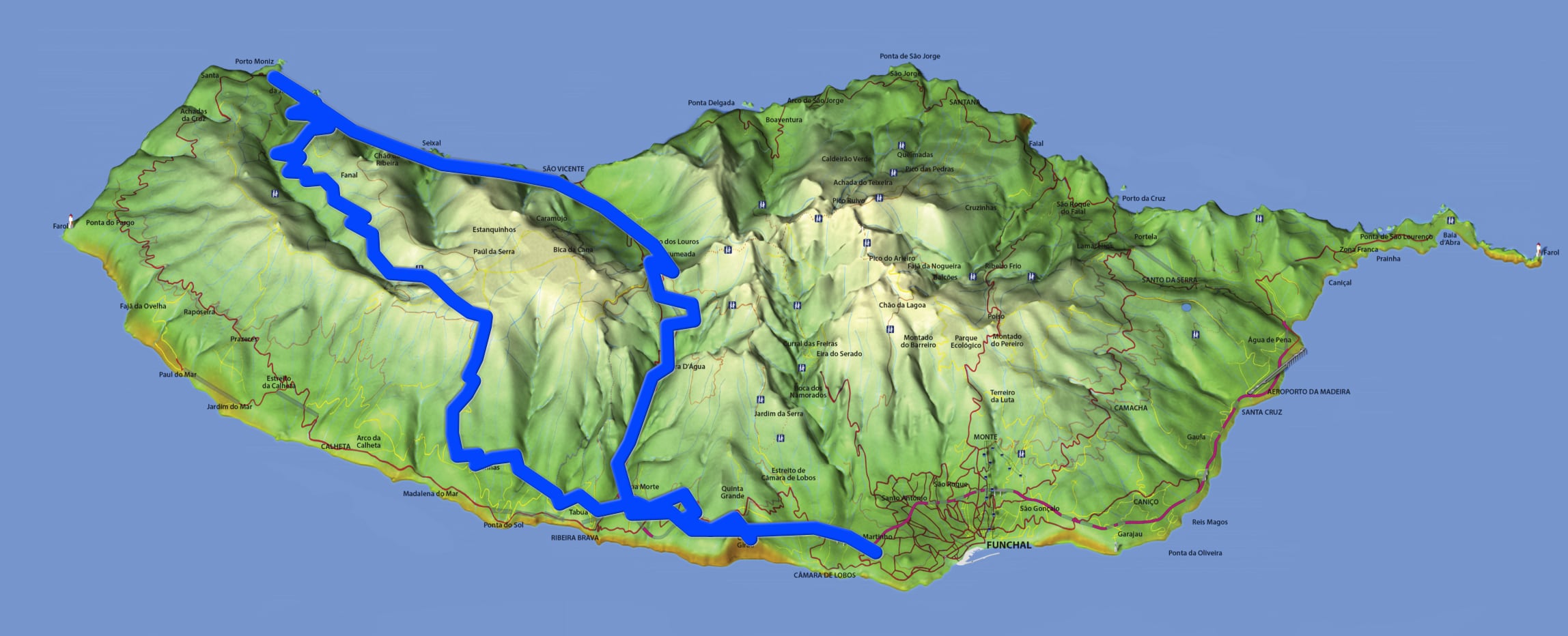 - <b>Fajã da Ovelha</b> – przejazd pełną zakrętów panoramiczną „starą drogą” pomiędzy Faja da Ovelha i Paul do Mar